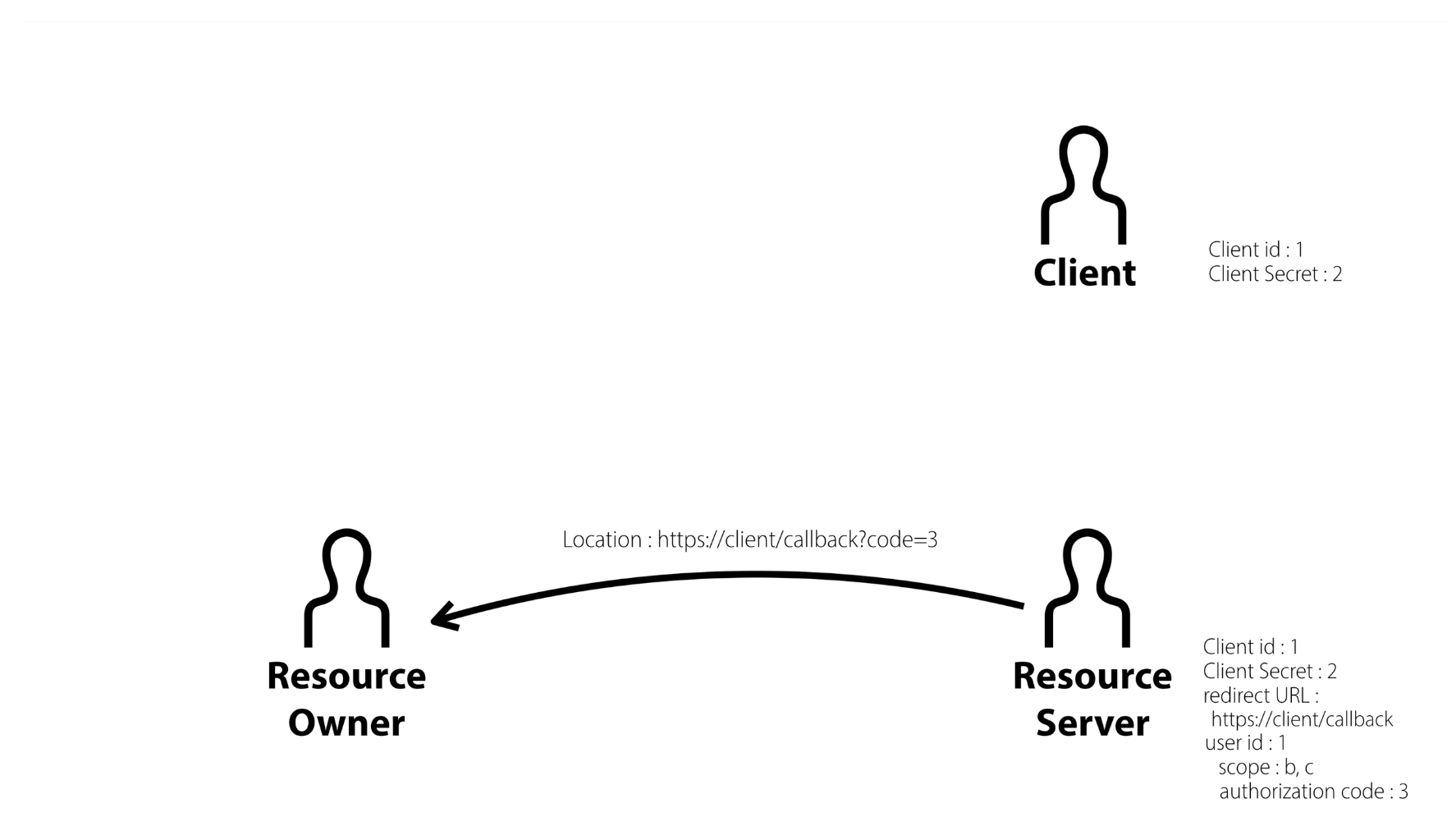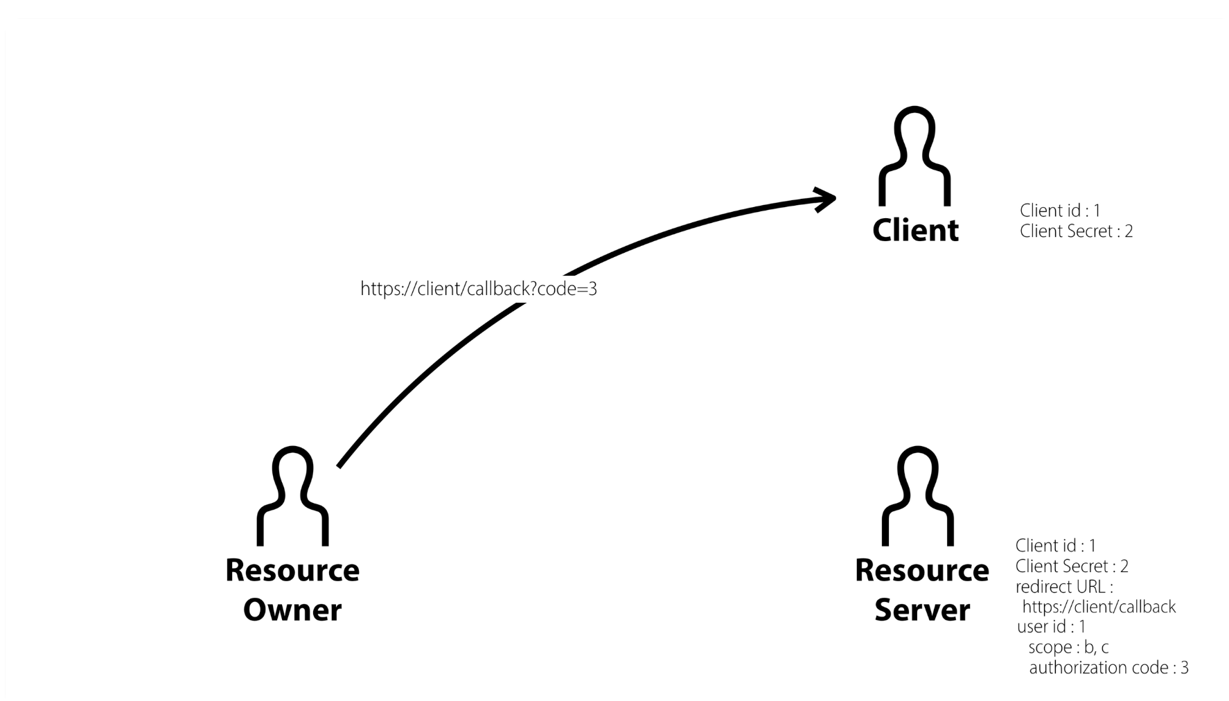 - Resource Owner는 client로 전달, client는 이 authorization code를 알게 됨