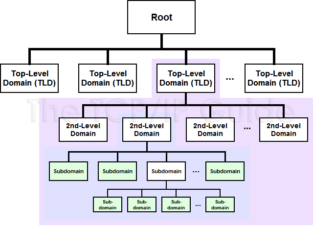 네임서버가 도메인 네임을 어떻게 관리하는지는 도메인 네임의 구조를 파악하며 확인할 수 있다. 도메인 네임은 점을 기준으로 계층적으로 분류되며, 하나의 도메인 네임 마지막에는 항상 점이 있다.