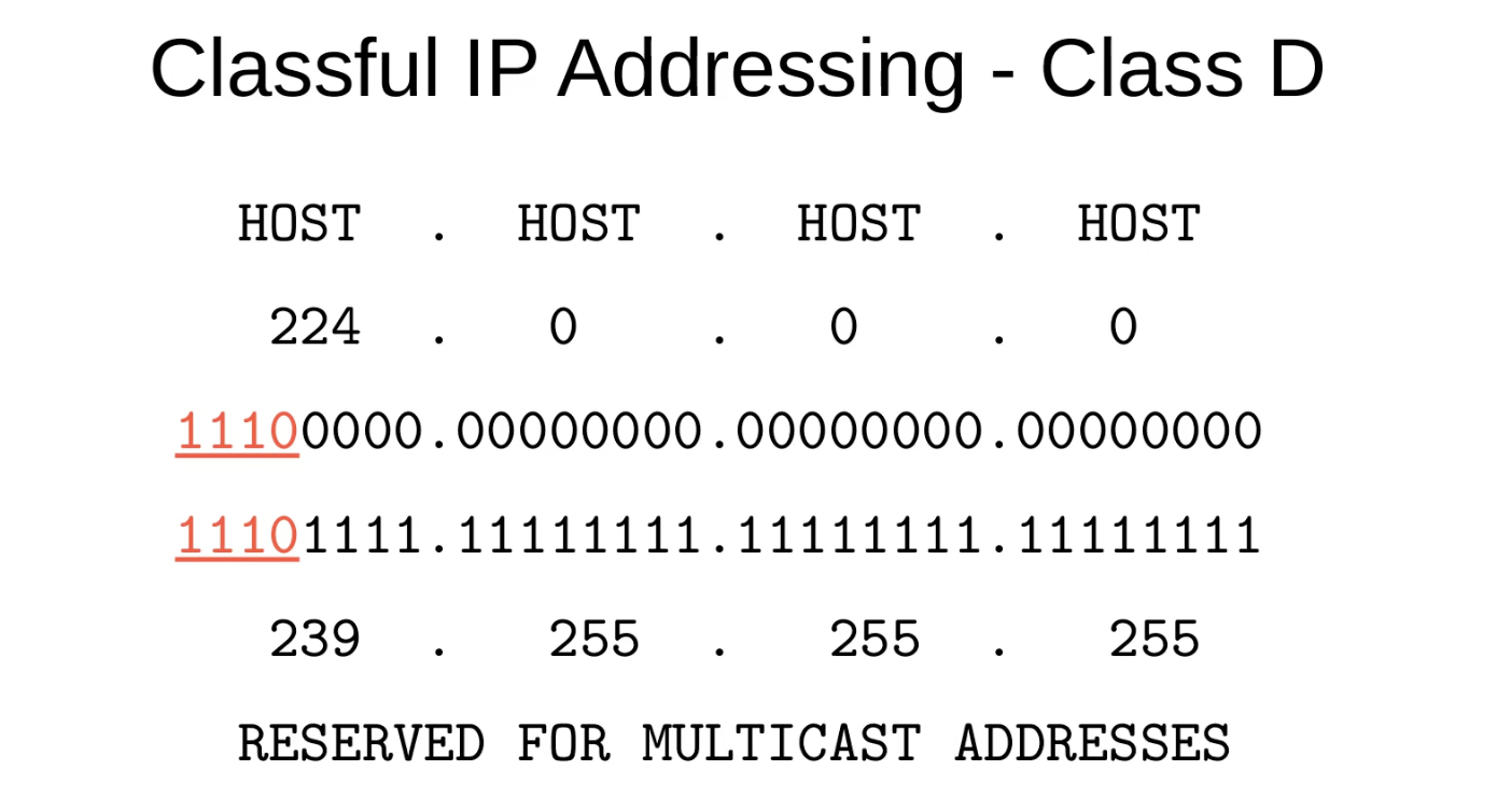 - 멀티캐스트(multi-casting)를 위해 예약된 클래스
