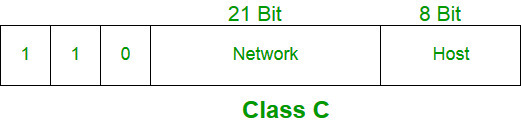- 네트워크 주소는 비트 110으로 시작하는 3옥텟, 호스트 주소는 1옥텟으로 구성